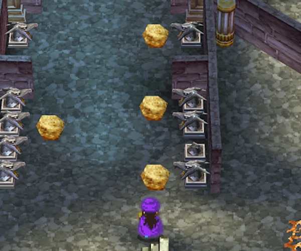 また、道中の宝箱の多くはミミックが潜んでいます。この時点では蘇生方法が豊富じゃないためザラキでパーティを壊滅させられることもしばしば。かと言って宝箱を回収しないのは勿体ないので、宝箱を調べる前にインパスを使いましょう。宝箱にインパスを唱えて赤く光ったら中身はミミックです。覚えておきましょう。