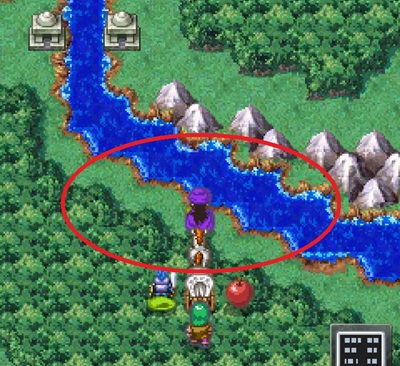 上の画像の様に川沿いは何故か【ラインハット周辺】という判定になっているため、スライムナイトを最短で仲間にするならここがおすすめです。