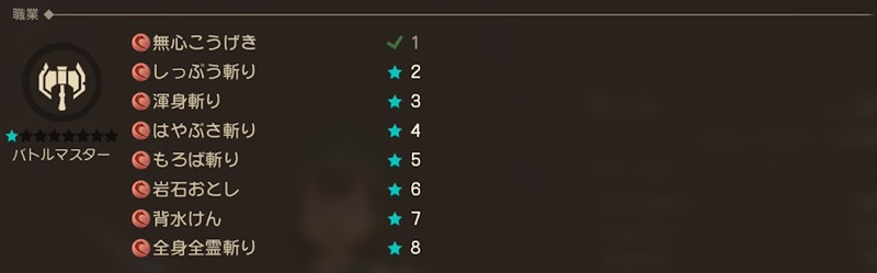 バトマスと言えば戦闘のエキスパートだというイメージだっただけに、覚える特技も強い特技も少なくて正直ガッカリでした。かけもちで他の職業の特技を一緒に使ってくださいというメッセージが聞こえてくるようです。