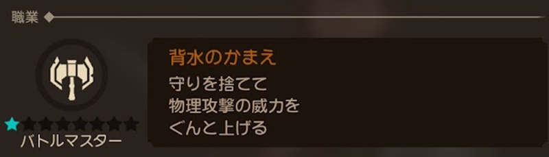 - 背水のかまえ(守りを捨てて物理攻撃の威力をぐんと上げる)