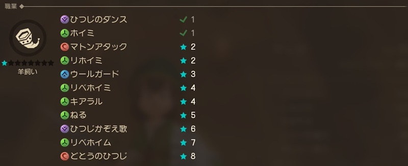 羊飼いがランクアップで覚える呪文・特技一覧