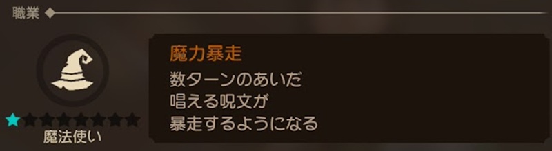 - 魔力暴走(数ターンのあいだ唱える呪文が暴走するようになる)