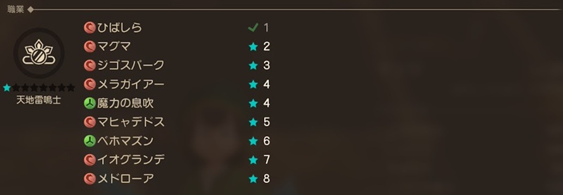「天地雷鳴士」はマスター職なので、決められた上級職をマスターにする必要があります。天地に関しては、賢者・スーパースター・海賊の中から2つをマスターすることで転職のリストに出てくるようになります。