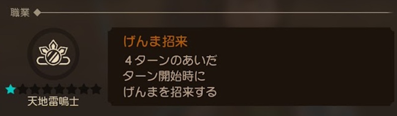 天地雷鳴士の代名詞である「げんま召喚」は特技から職業特性に変わりました。発動するとげんまを召喚し、発動者より先に様々な行動をしてくれます。