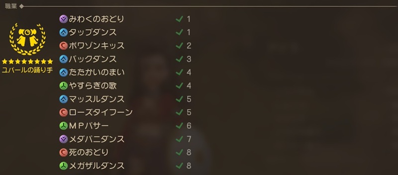 ユバールの踊り手がランクアップで覚える呪文・特技一覧