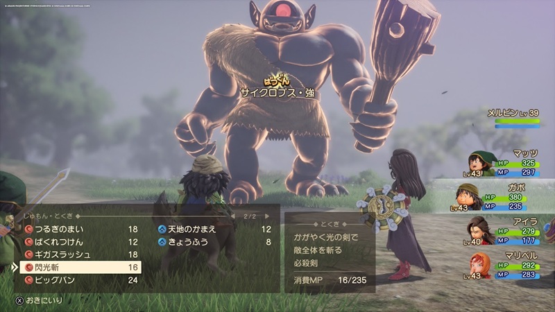 サイクロプス強は見た目通り攻撃力が高く痛恨の一撃を繰り出す物理攻撃型のモンスターです。強力な通常攻撃の他に、全員にダメージ+転びの効果がある「ランドインパクト」を使ってきます。