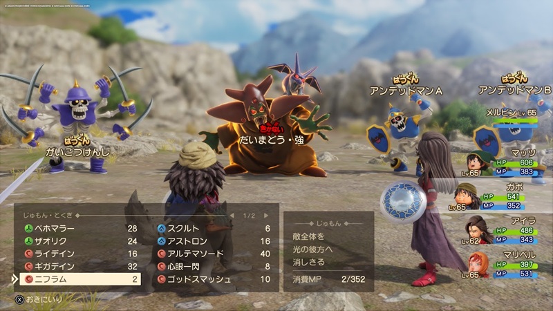 だいまどう強1体になれば楽勝です。全体攻撃を受けたら回復しつつ、いつもの「バイキルト」+「ばくれつけん」や「つるぎのまい」でガンガン攻撃すればあっという間に倒せます。