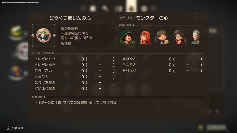 どうくつまじんの心を装備した際の効果