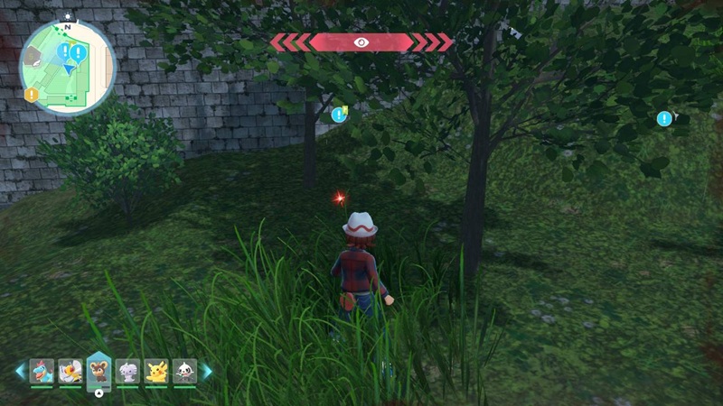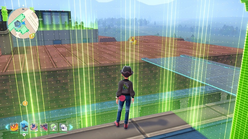もう一つは、ストーリーを進めると現れるワイルドゾーン18に野生として出現します。エリアの真ん中辺り(実際はエリアの外)にあるアスレチックを登った先からワイルドゾーンに入り、奥にある屋根の上に現れます。こちらに気が付くと逃げてしまうので、近くの壁のような煙突?に隠れて後ろを向いたタイミングで捕まえましょう。