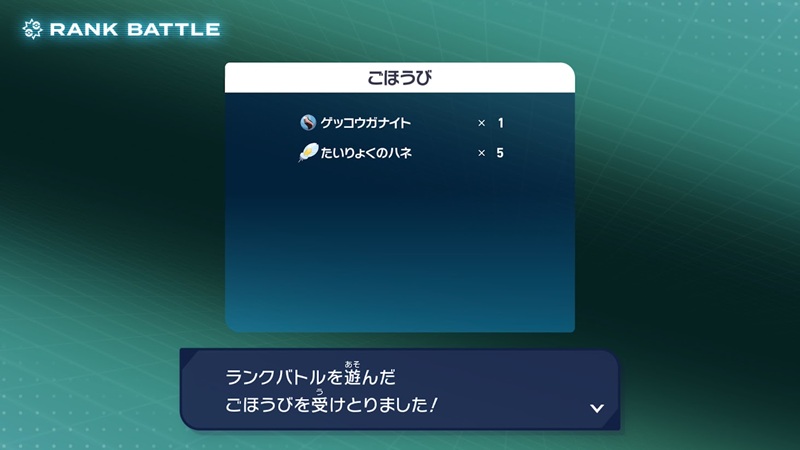 ゲッコウガをメガゲッコウガにするために必要な「ゲッコウガナイト」は、ランクバトル(シーズン1)のKランクへのランクアップ報酬で入手できます。