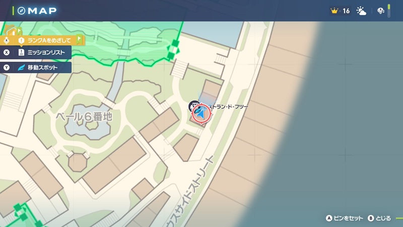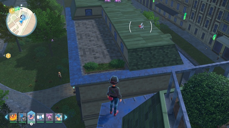 屋上に着いたら屋根の淵を歩き、画像の様にギリギリのラインからレストラン・ド・フツーの建物の屋上めがけてローリングします。ローリングするタイミングにはかなり余裕があるので特に問題なく向こう側へ行けると思いますが、もし落ちてしまったら再度やり直すだけです。