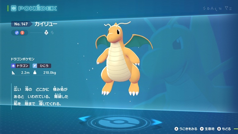 ミニリュウはこの他にも複数個所で出現しますが、この位置が序盤から手っ取り早く行ける上に厳選もしやすいのでお勧めです。