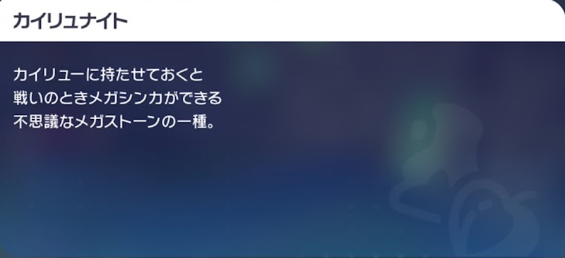 メガカイリューにメガシンカするために必要な「カイリュナイト」はメインミッション32で入手できます。早く手に入れる方法は無いので、欲しい方はストーリーを進めましょう。