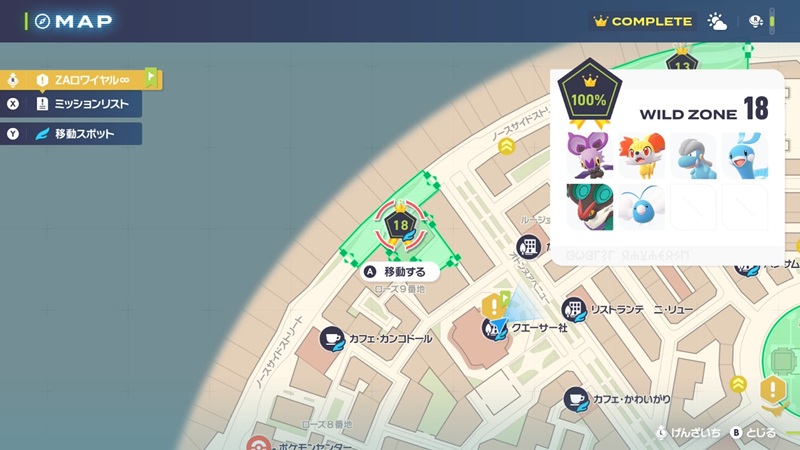 ワイルドゾーン18はメインミッション31で解放されます。強力なドラゴンタイプのポケモンを厳選するのに便利な場所なので、好きな方は屋上にあるベンチに入り浸ることになるでしょう。ちなみに、タツベイやフォッコに関してはここにしか出現しません。