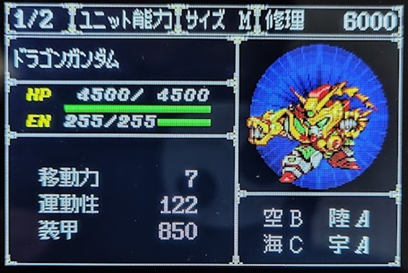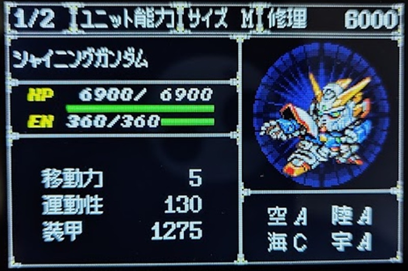 シャイニングガンダムと行動を共にするためセットで改造しておくと分岐で戦力が落ちることもなく、終始安定したパフォーマンスを見せてくれるので、資金に余裕が出来たら運動性と武器を少しずつ改造しておくと良いです。