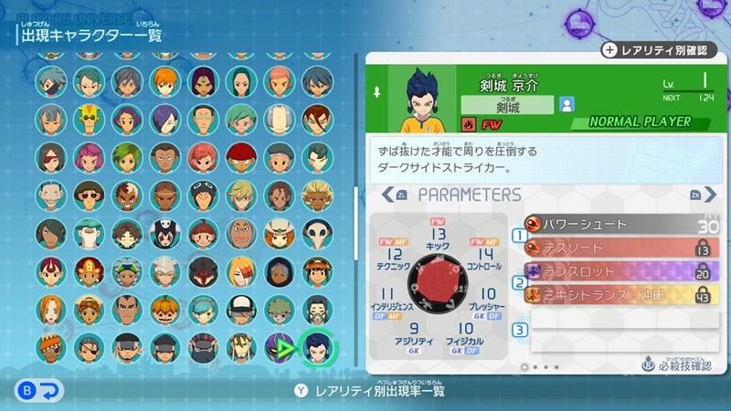 今回筆者は剣城のイメージをなるべく損なわないような技構成にしつつ、多彩なシュートで点を狙うフィニッシャー育成を考えてみました。