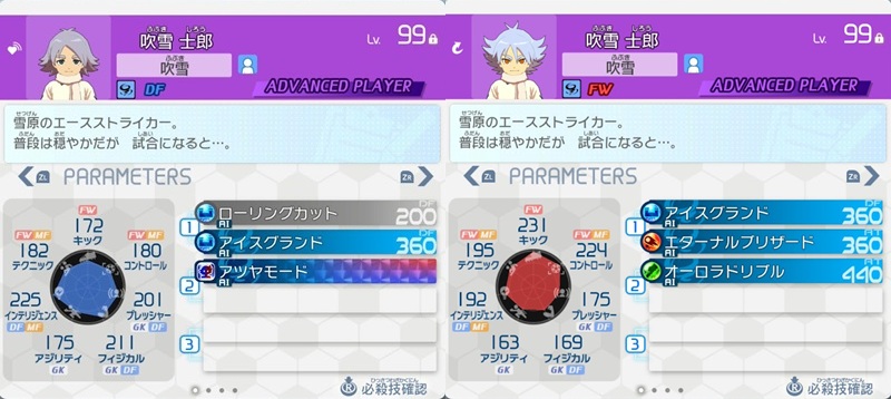 こちらはキックやコントロールの伸びが良く得点力に優れたFWとなっており、必殺技の構成もバランスが良く、吹雪らしい汎用性の高さも見せてくれます。