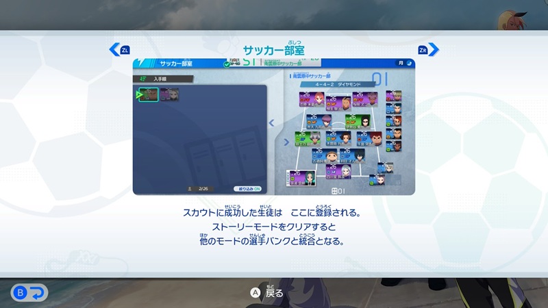 ストーリーモードを先にクリアすると選手バンクにストーリーモードの選手が統合されるため、最初からレベル50くらいのキャラが大量にいる状態で始められます。