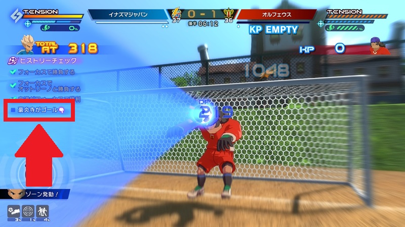 上画像で言うなら、「豪炎寺がゴール」とだけ書いてあるので、豪炎寺でシュートを打てばOK。豪炎寺の普通のシュートは約300、相手KPは約1000でも確実に決まります。城壁がいても問題ありません。