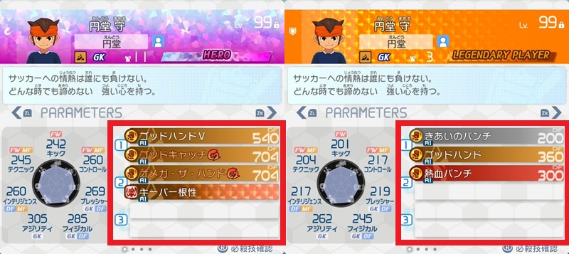 ゴールキーパーやキャプテンとして円堂守を使いたい人は多いと思うので、序盤はLEGENDARYを育てながら使い、HEROを手に入れた際に入れ替えるべきか考える流れが一般的でしょう。