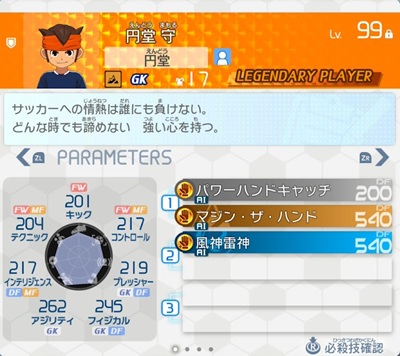 アップデートにてアレスバージョンの円堂守(利根川東泉中)が実装されました。これまでの雷門中の円堂守と比べて、最初から「マジン・ザ・ハンド」や「風神雷神」といった強力な必殺技を覚えるため、新しく始めた方が育てるならアレスバージョンの円堂守の方が良いと思います。
