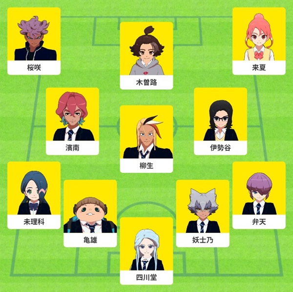 現時点で南雲原中のメインメンバーのポジションは、桜咲丈二・忍原来夏がFW、木曽路兵太がMF、古道飼亀雄がDF、四川堂我流がGKとなっています。