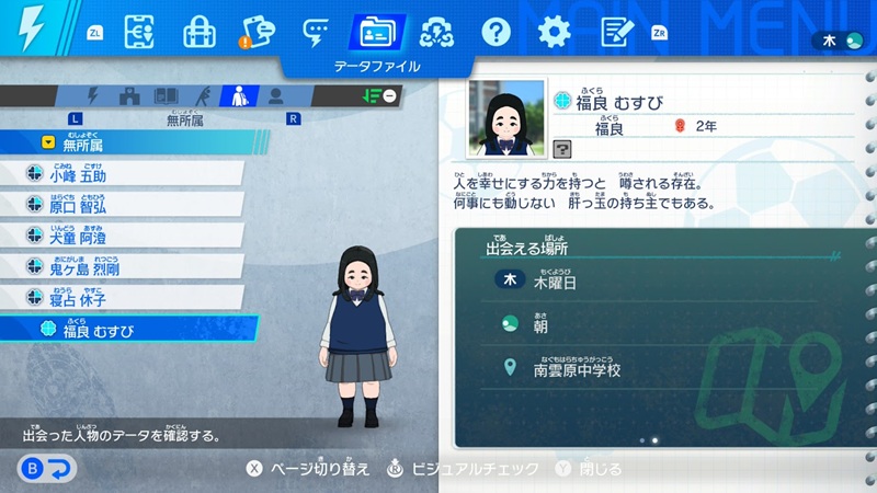 クリア後のスカウトは他のキャラと違って話しかけるだけで勧誘出来ます。木曜日の朝限定で南雲原中の校舎前に出現します。