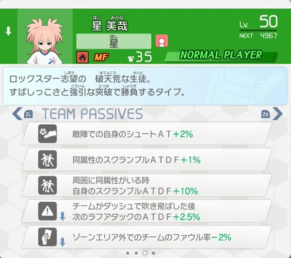 スクランブルやファウルなどのランダム要素に絡むものが多いので効果が分かり辛いと思います。ダッシュやスライディングなどは結構試合で役に立つテクニックなのでファウル率ダウンは嬉しいですが、あくまで確率論なので彼女の恩恵かと言われると悩ましいです。
