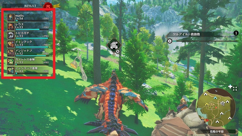 タルアイルーを倒す(正しくは救助する)と1匹につき約1000の経験値が貰えます。最大3匹出現することもあり、序盤ではかなり美味しいです。