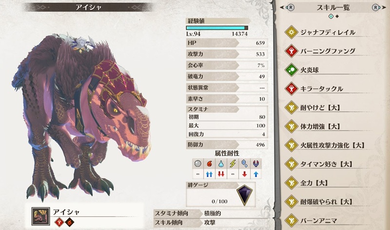 エレーヌのサイドストーリーを進めると「アイシャ(アンジャナフ)」の他に「ディー(ディノバルド)」も選べるようになります。どちらも非常に強いですが、例の如く火属性に特化する目的で使うことが多いため、アイシャの方がおすすめです。