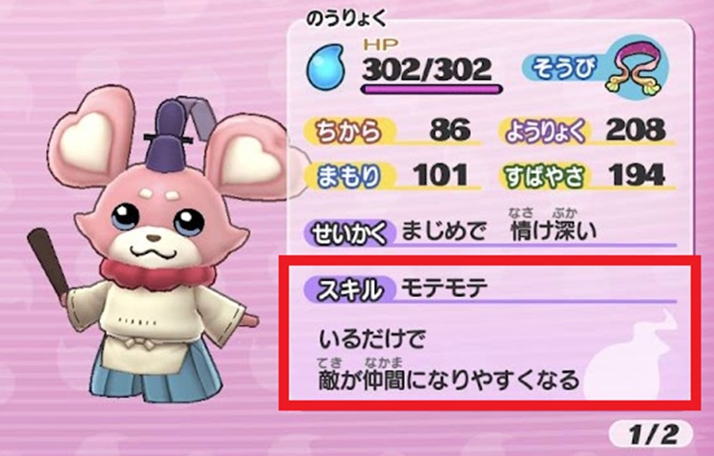 しかし、妖怪ウォッチでは多くの妖怪と友達になるのが目的の一つなので、少しでも仲間にできる確率をアップしておきたいところ。そのため、モテモテ持ちの妖怪は常に手持ちに入れておくと良いです。