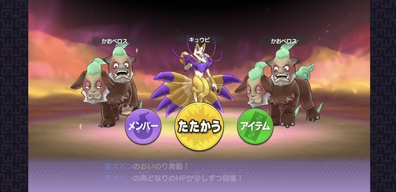 - 出現した「キュウビ、かおベロス×2」とバトル