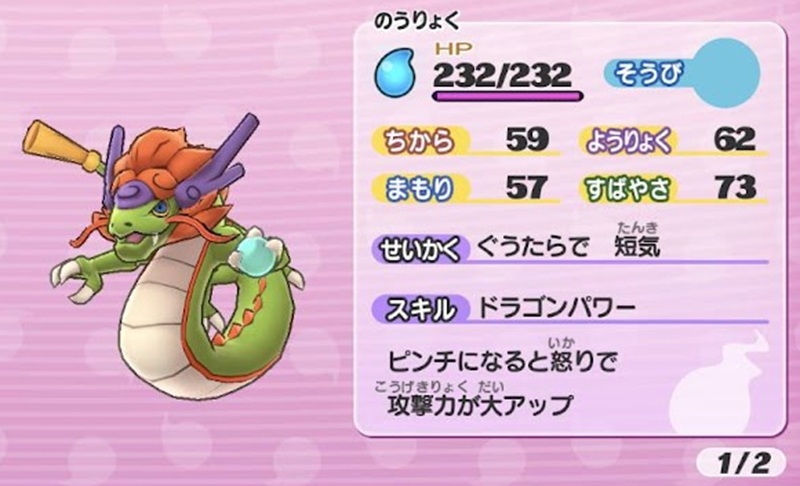 スキルの「ドラゴンパワー」は戦闘中にピンチになった時に発動するのですが、回復妖怪の能力が高い場合はピンチになる前にどんどん回復してくれるため、強力なボス相手以外は中々発動してくれません。妖怪が自分で判断して動くというゲームの仕様上、自分で回復をコントロールできないのが惜しい点です。