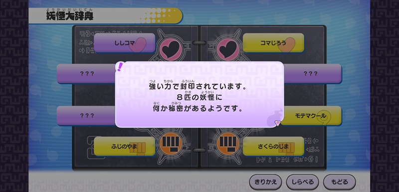 しゅらコマはレジェンド妖怪なので、決められた8匹の妖怪を仲間にすることで妖怪大辞典の最後の方のページから封印を解いて仲間に出来ます。